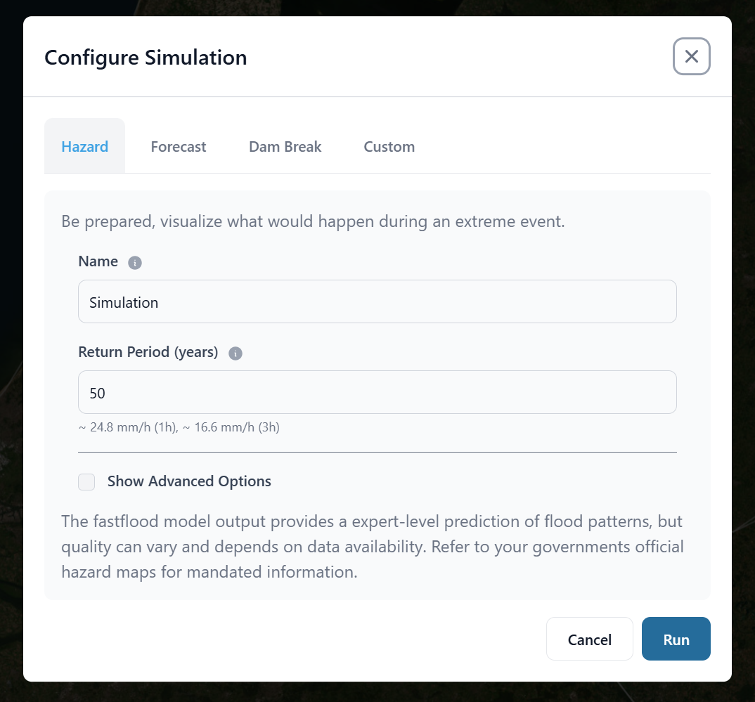 - Set Your Parameters: In the "Configure simulation" panel, you can now define the storm. The platform makes this easy. You don't need to find the data; just set the level of extremeness.