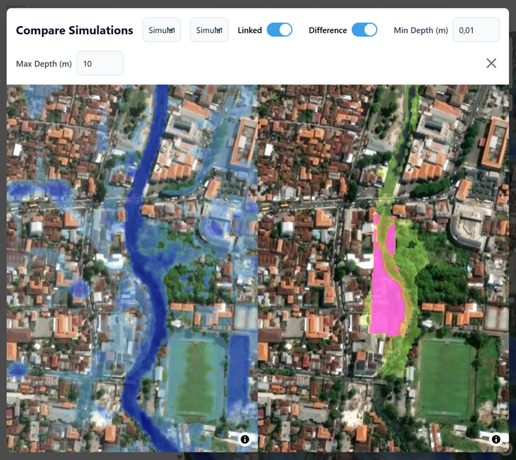 Directly comparing the simulations and the edited scenarios is possible in the tool